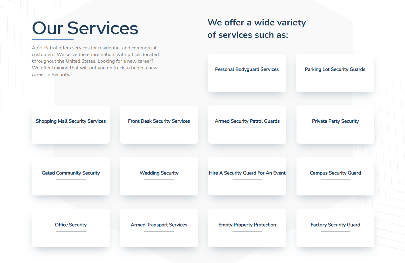 Alert Patrol offers professional armed and unarmed security guards for your home or business. We are licensed, bonded and insured and all of our guards and concierge staff are trained to protect you with modern and sophisticated actions that deter criminal activity.